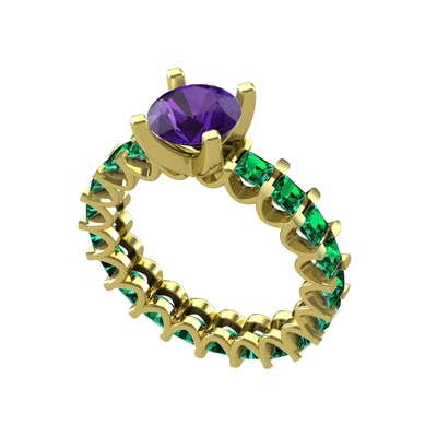 Ametist ve yeşil kuvars 18 ayar altın yüzük