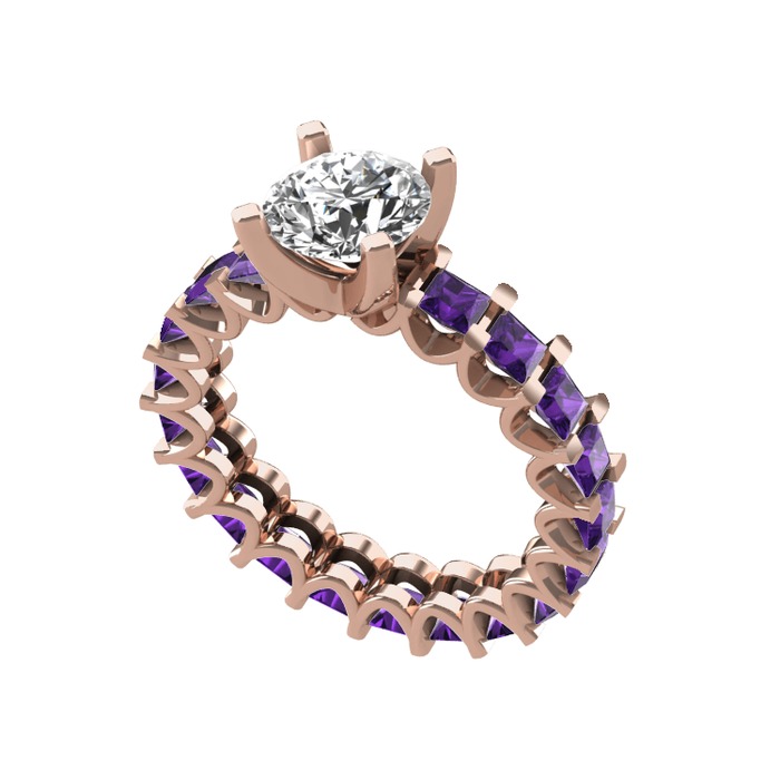 Beyaz zirkon ve ametist 14 ayar rose altın yüzük