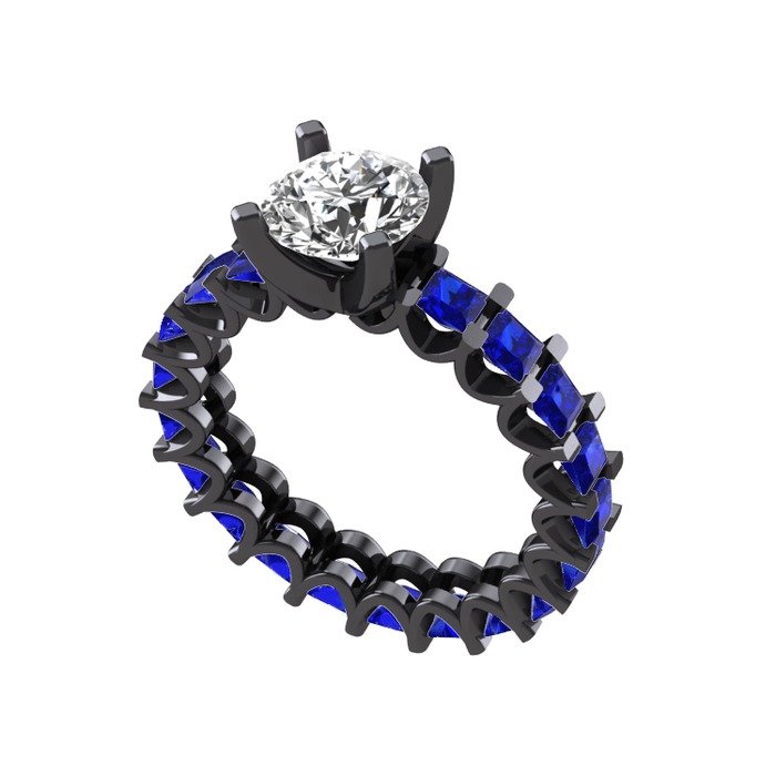 Beyaz zirkon ve lab safir 925 ayar siyah rodyum kaplama gümüş yüzük