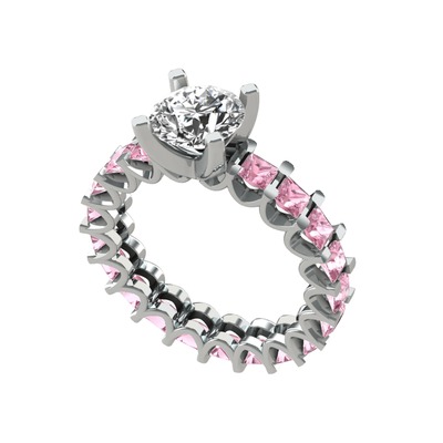 Beyaz zirkon ve pembe kuvars 8 ayar beyaz altın yüzük
