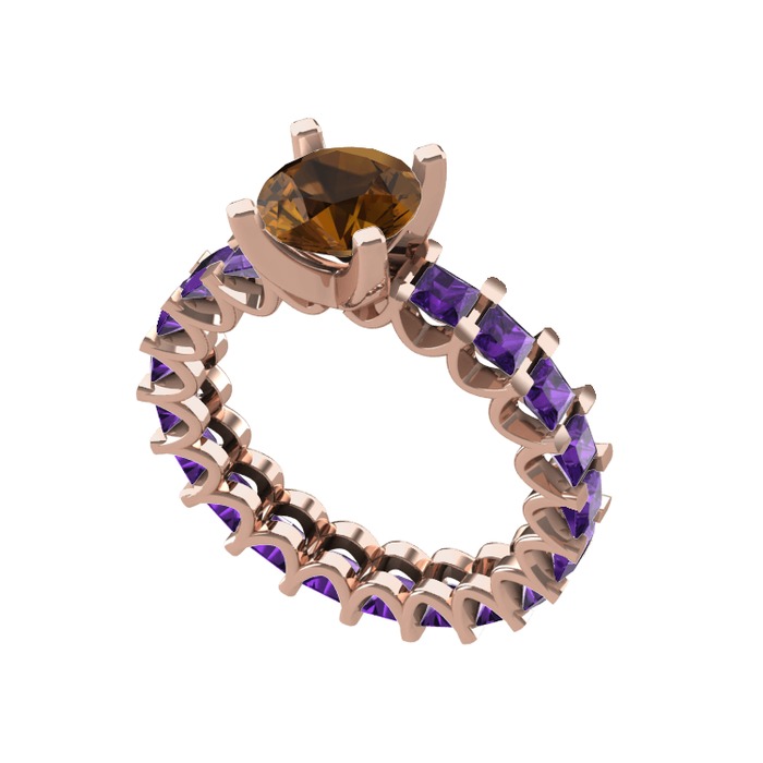 Dumanlı kuvars ve ametist 14 ayar rose altın yüzük