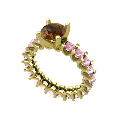 Dumanlı kuvars ve pembe kuvars 925 ayar altın kaplama gümüş yüzük