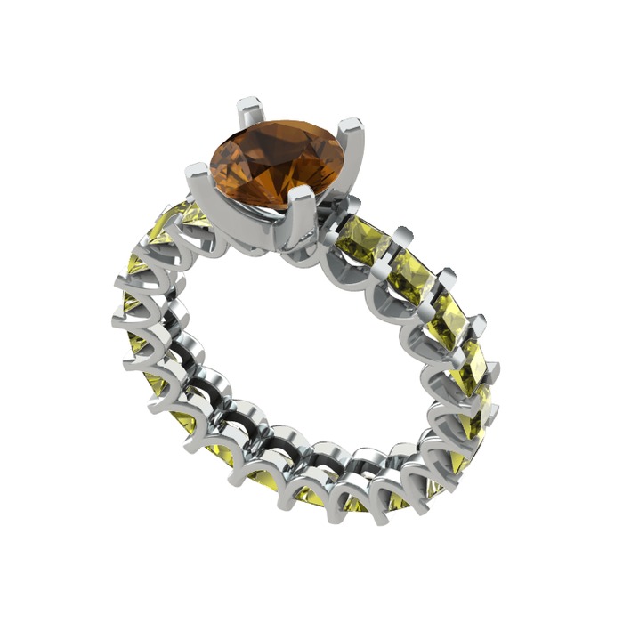 Dumanlı kuvars ve peridot 925 ayar gümüş yüzük