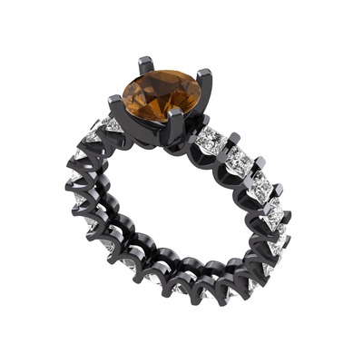 Dumanlı kuvars ve pırlanta 925 ayar siyah rodyum kaplama gümüş yüzük (3 karat)