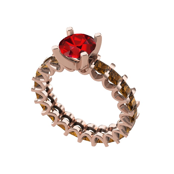 Garnet ve dumanlı kuvars 8 ayar rose altın yüzük