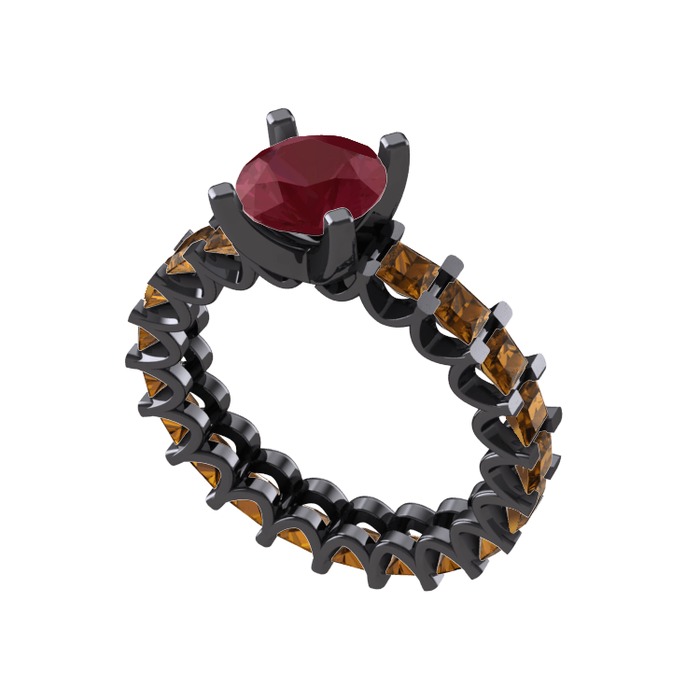 Kök yakut ve dumanlı kuvars 925 ayar siyah rodyum kaplama gümüş yüzük