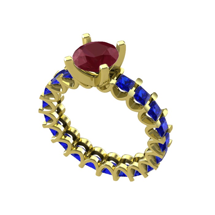 Kök yakut ve lab safir 18 ayar altın yüzük