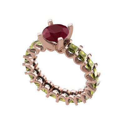 Kök yakut ve peridot 925 ayar rose altın kaplama gümüş yüzük