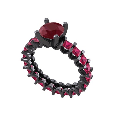 Kök yakut ve rodolit garnet 925 ayar siyah rodyum kaplama gümüş yüzük