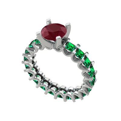 Kök yakut ve yeşil kuvars 14 ayar beyaz altın yüzük