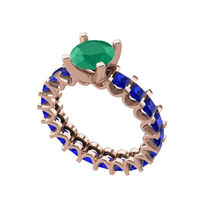 Kök zümrüt ve lab safir 8 ayar rose altın yüzük