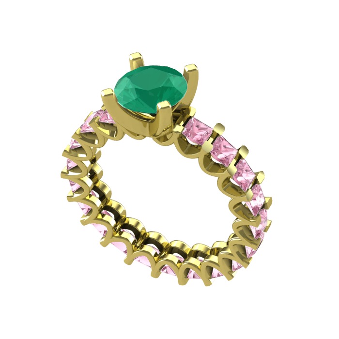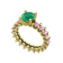 Kök zümrüt ve pembe kuvars 18 ayar altın yüzük
