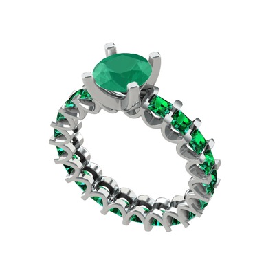 Kök zümrüt ve yeşil kuvars 8 ayar beyaz altın yüzük