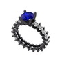 Lab safir ve pırlanta 925 ayar siyah rodyum kaplama gümüş yüzük (3 karat)