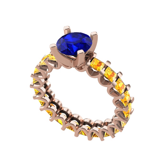 Lab safir ve sitrin 14 ayar rose altın yüzük