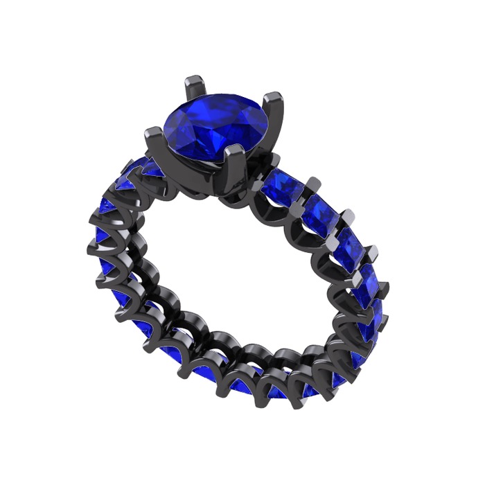 Lab safir 925 ayar siyah rodyum kaplama gümüş yüzük