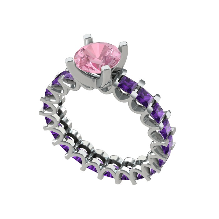 Pembe kuvars ve ametist 18 ayar beyaz altın yüzük