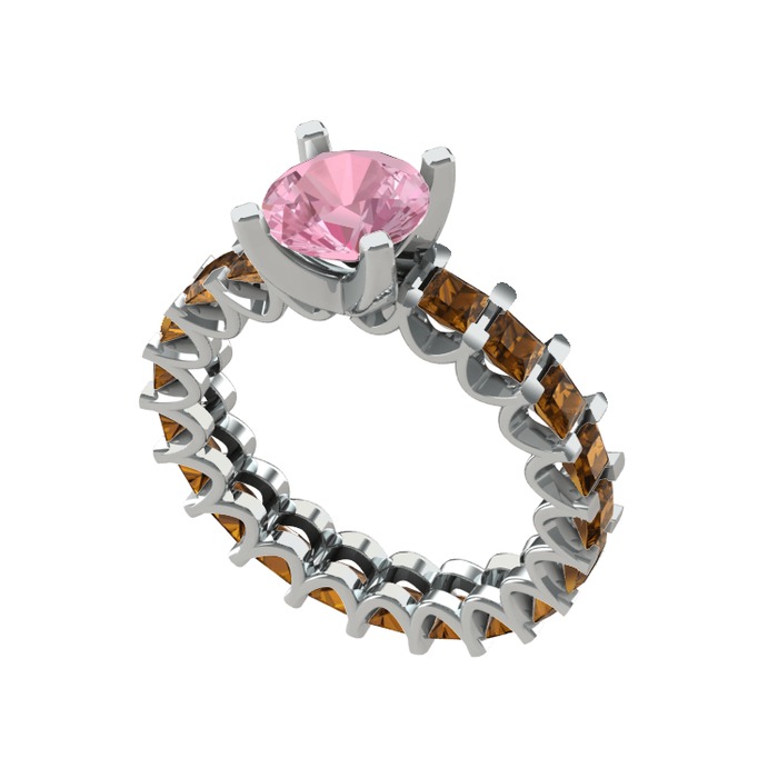Pembe kuvars ve dumanlı kuvars 18 ayar beyaz altın yüzük