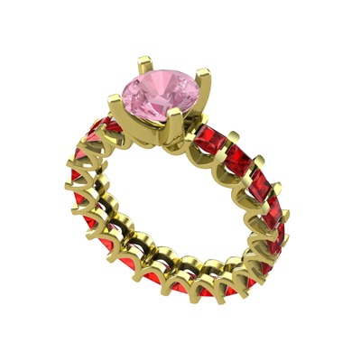 Pembe kuvars ve garnet 18 ayar altın yüzük