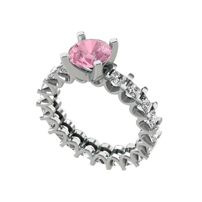 Pembe kuvars ve pırlanta 18 ayar beyaz altın yüzük (3 karat)