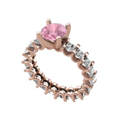 Pembe kuvars ve pırlanta 18 ayar rose altın yüzük (3 karat)