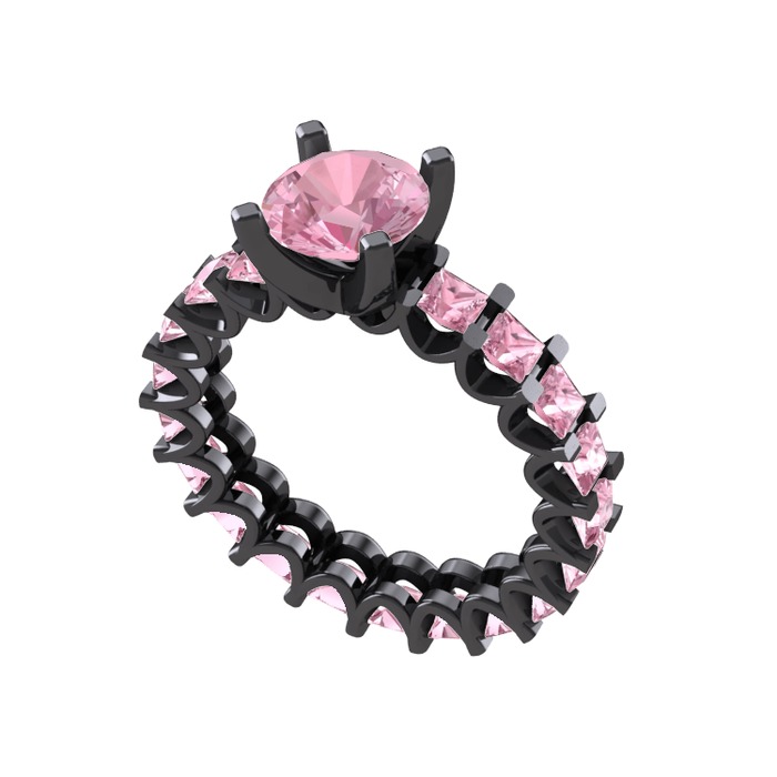 Pembe kuvars 925 ayar siyah rodyum kaplama gümüş yüzük