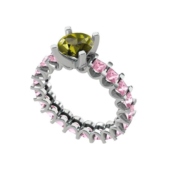 Peridot ve pembe kuvars 18 ayar beyaz altın yüzük