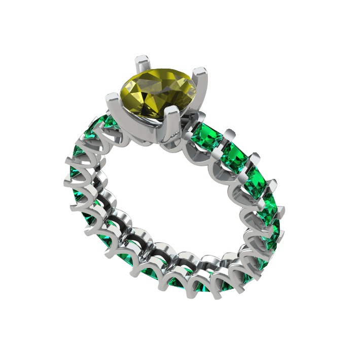 Peridot ve yeşil kuvars 14 ayar beyaz altın yüzük