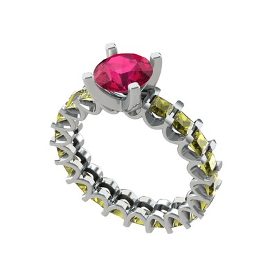 Rodolit garnet ve peridot 14 ayar beyaz altın yüzük