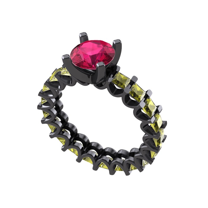 Rodolit garnet ve peridot 925 ayar siyah rodyum kaplama gümüş yüzük