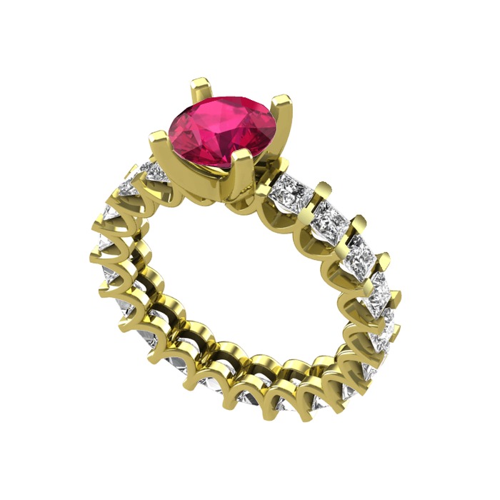 Rodolit garnet ve pırlanta 14 ayar altın yüzük (3 karat)