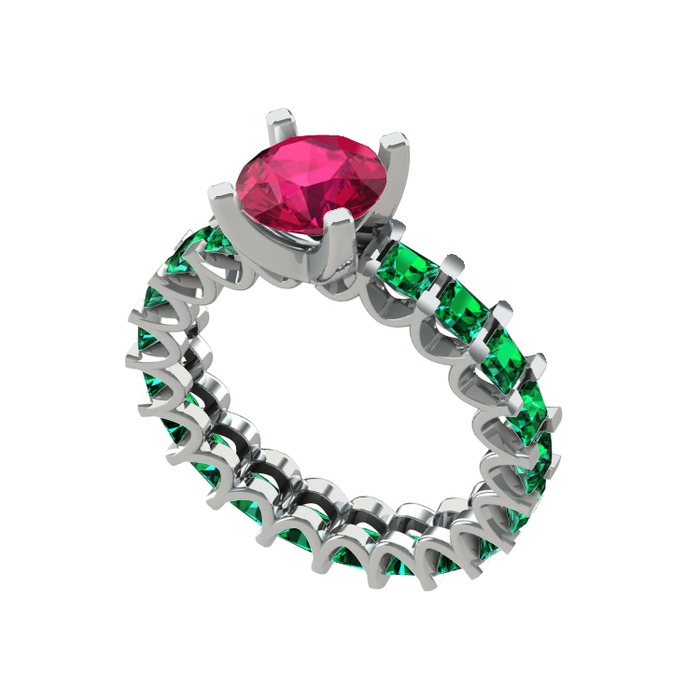 Rodolit garnet ve yeşil kuvars 14 ayar beyaz altın yüzük