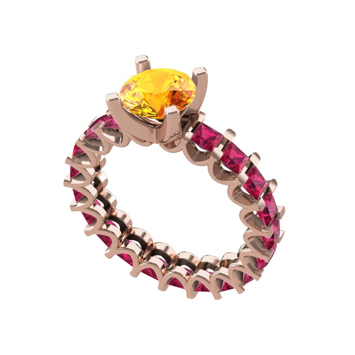 Sitrin ve rodolit garnet 18 ayar rose altın yüzük