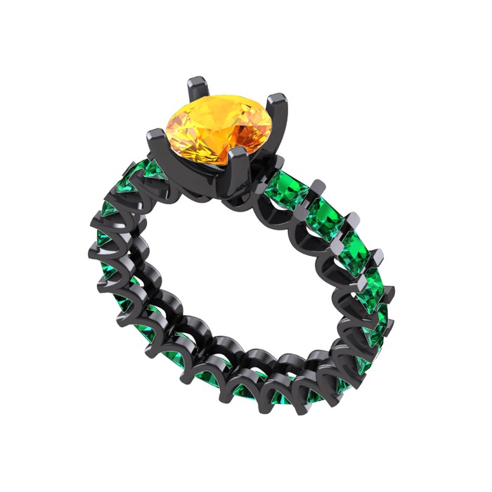Sitrin ve yeşil kuvars 925 ayar siyah rodyum kaplama gümüş yüzük