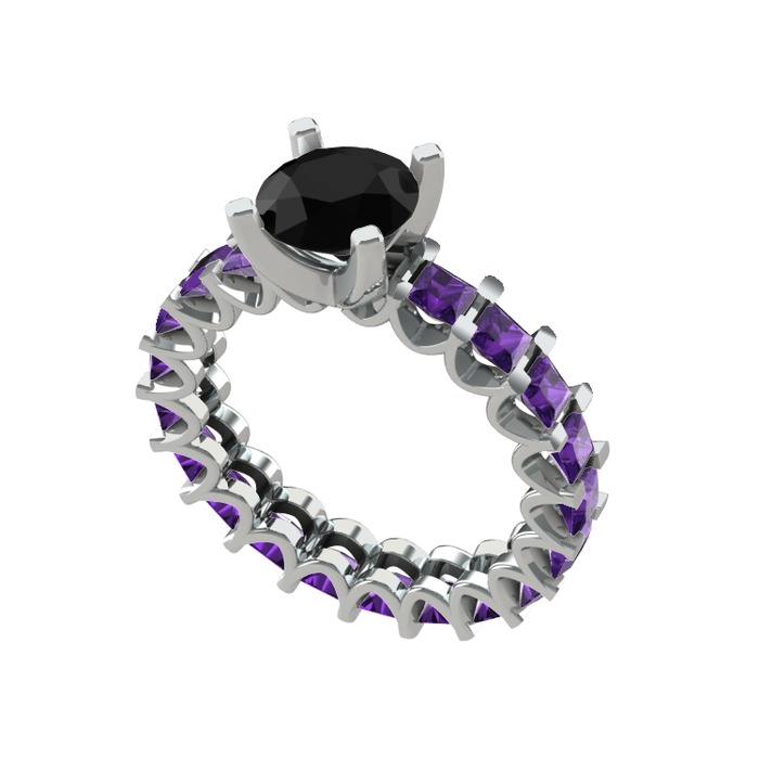 Siyah zirkon ve ametist 18 ayar beyaz altın yüzük