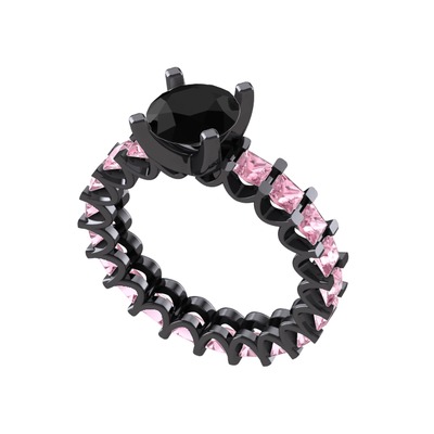 Siyah zirkon ve pembe kuvars 925 ayar siyah rodyum kaplama gümüş yüzük