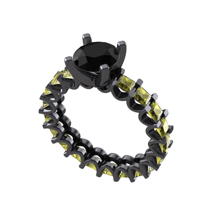 Siyah zirkon ve peridot 925 ayar siyah rodyum kaplama gümüş yüzük