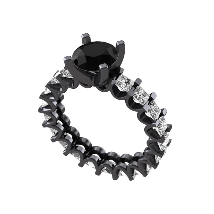 Siyah zirkon ve pırlanta 925 ayar siyah rodyum kaplama gümüş yüzük (3 karat)