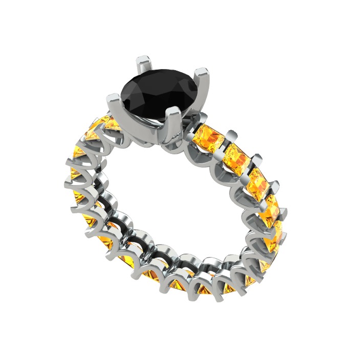 Siyah zirkon ve sitrin 8 ayar beyaz altın yüzük