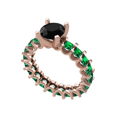Siyah zirkon ve yeşil kuvars 8 ayar rose altın yüzük