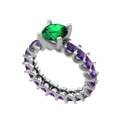 Yeşil kuvars ve ametist 925 ayar gümüş yüzük