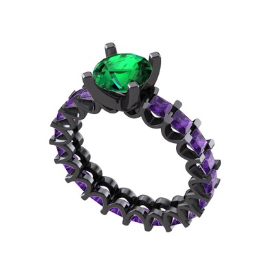 Yeşil kuvars ve ametist 925 ayar siyah rodyum kaplama gümüş yüzük