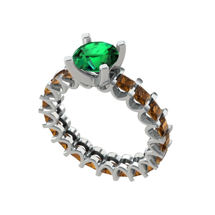 Yeşil kuvars ve dumanlı kuvars 14 ayar beyaz altın yüzük