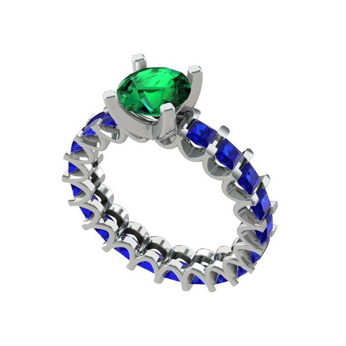 Yeşil kuvars ve lab safir 8 ayar beyaz altın yüzük