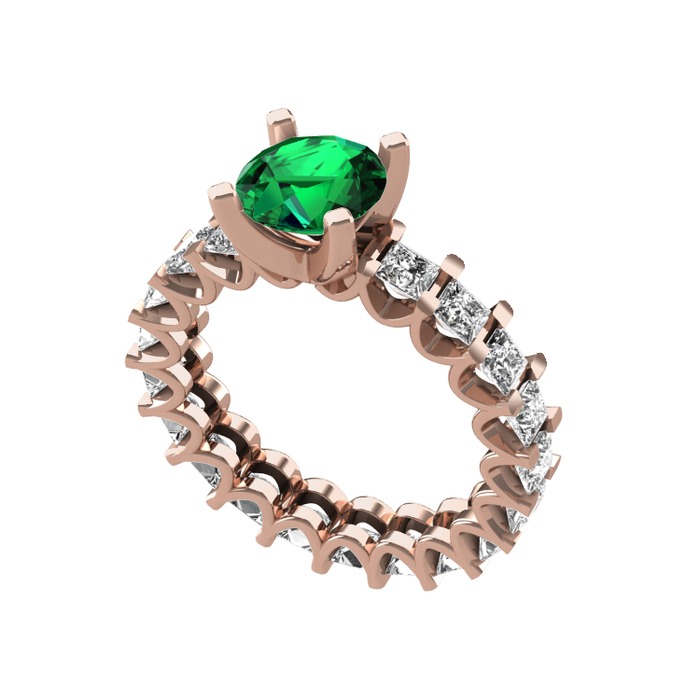 Yeşil kuvars ve pırlanta 18 ayar rose altın yüzük (3 karat)