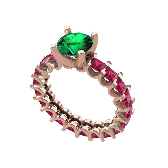 Yeşil kuvars ve rodolit garnet 14 ayar rose altın yüzük