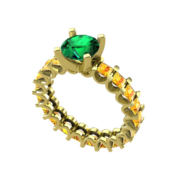 Yeşil kuvars ve sitrin 14 ayar altın yüzük