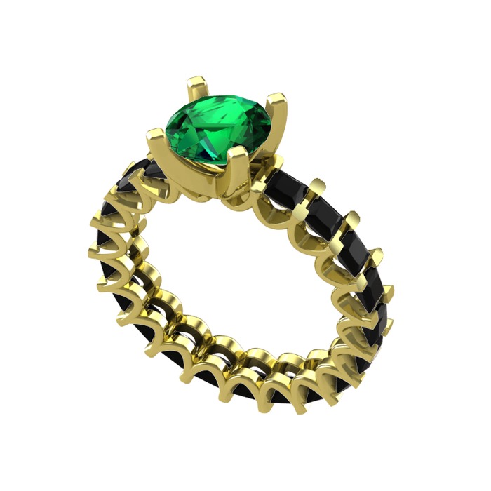 Yeşil kuvars ve siyah zirkon 14 ayar altın yüzük