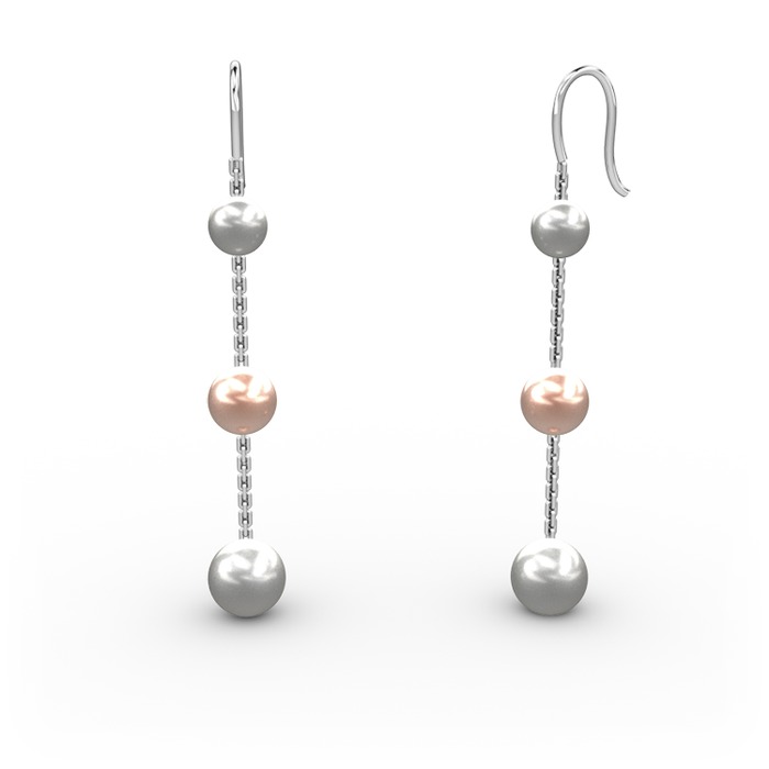Inci ve pembe inci 18 ayar beyaz altın küpe