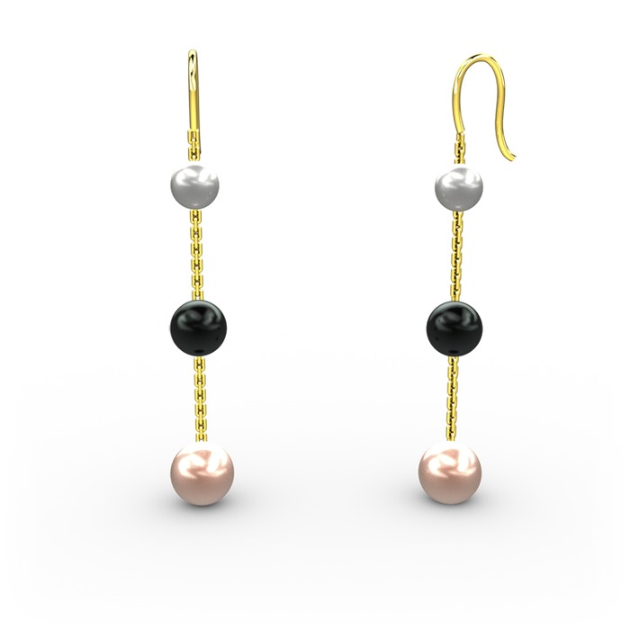 Inci, siyah inci ve pembe inci 8 ayar altın küpe